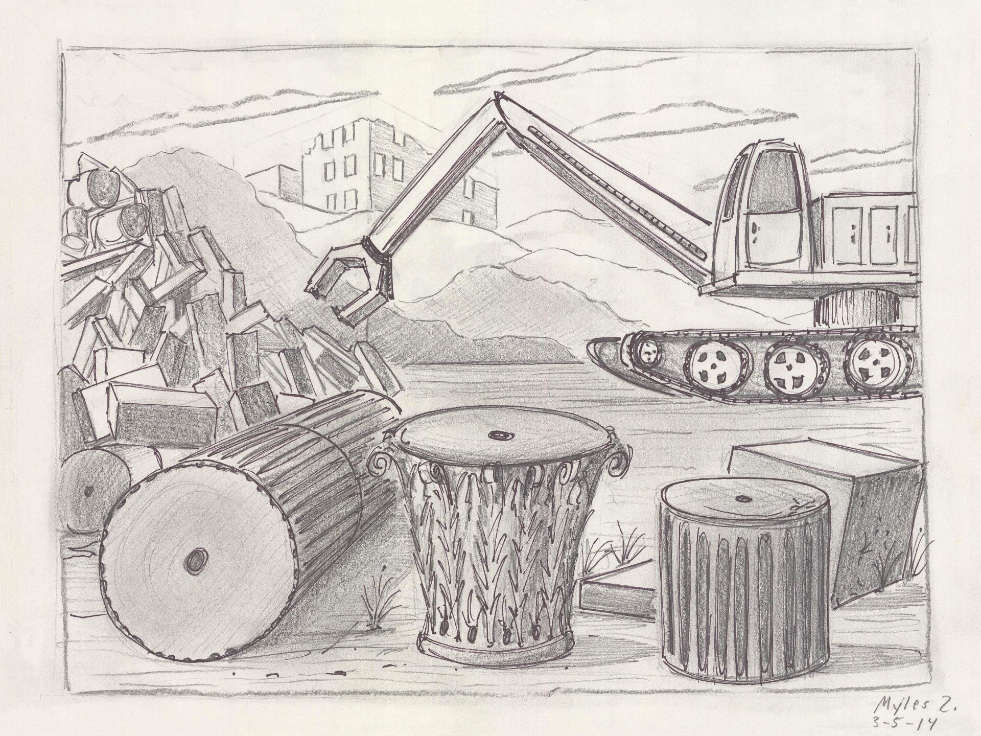 Roman roads lasted millennia and Roman sewers are still in use; will our crumbling infrastructure last as long? Roman towers of stone withstood the elements for centuries; will our rusting skyscrapers of steel last as long? The Roman forum became legendary; this architectural space become a powerful symbol for democracy and government long after the Roman buildings themselves had decayed. Could the same destiny await our “forums” of today, the strip mall, the grocery chain, and the drive-thru? The Renaissance aspired to the grandeur of Rome; what society will aspire to the grandeur of our society? Or, will there even be much to aspire to with the twisted piles of fallen metal and the troubled environment our children will inherit?