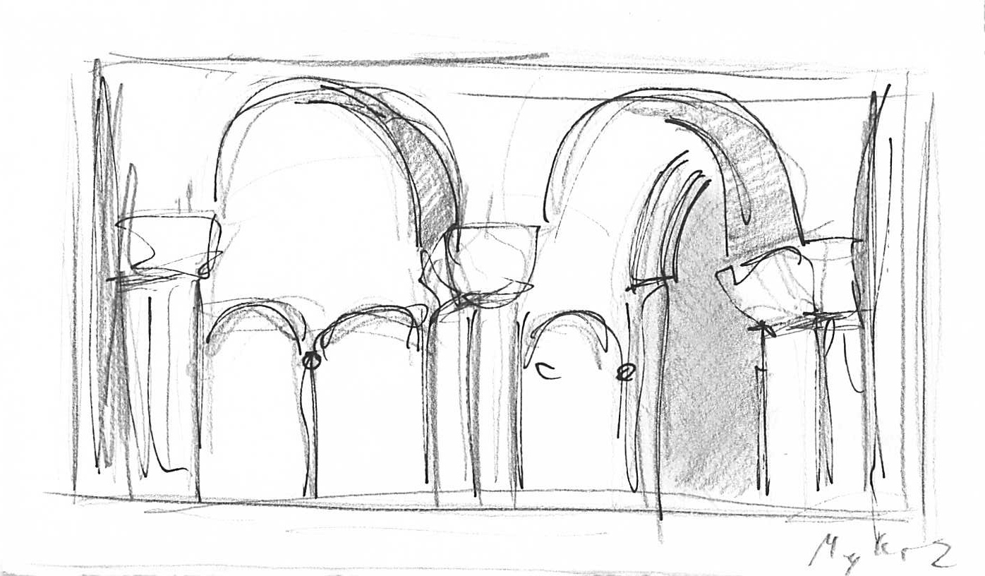 Aesthetic principles guided the architecture of Vitruvius’s time. Vitruvius emphasizes how architecture must relate to the human body, “In the human body there is a kind of symmetrical harmony between forearm, foot, palm, finger, and other small parts; and so it is with perfect buildings” (Vitruvius 14). Vitruvius desires a continuum where well-proportioned and symmetrical humans inhabited equally well-proportioned structures. As the human body attains perfection through harmony, so too must architecture. Consequently, the architect becomes an interpreter, translating the proportions and elegance of the body into the forms of perfect buildings. As the human body has legs, torso, and head, architecture must have base, middle, and top. As the human body is symmetrical from left to right, architecture must be symmetrical from left to right. As the human body measures each organ in relation to the greater being, architecture must consider each detail in relation to the greater building. Vitruvius emphasizes continuity between man and his world, a place where man has an environment befitting his stature. The gendered language is Vitruvius’, not mine.