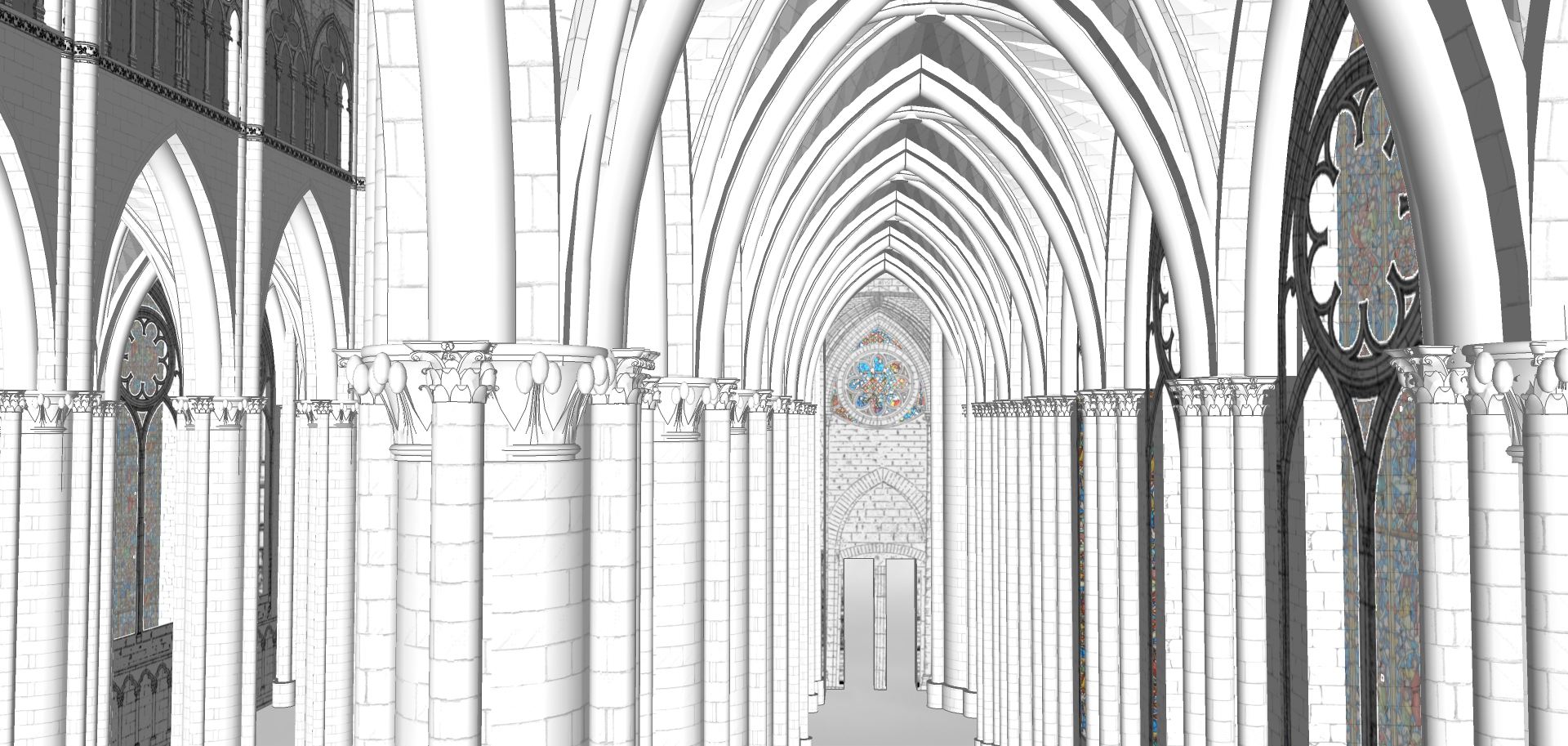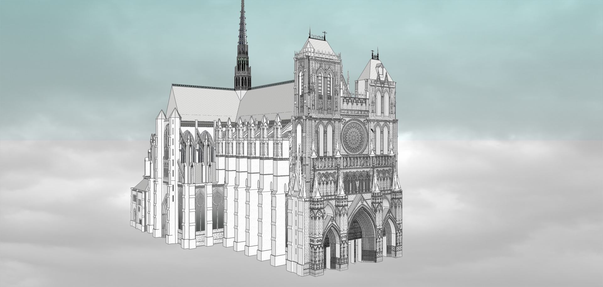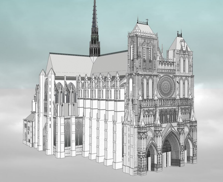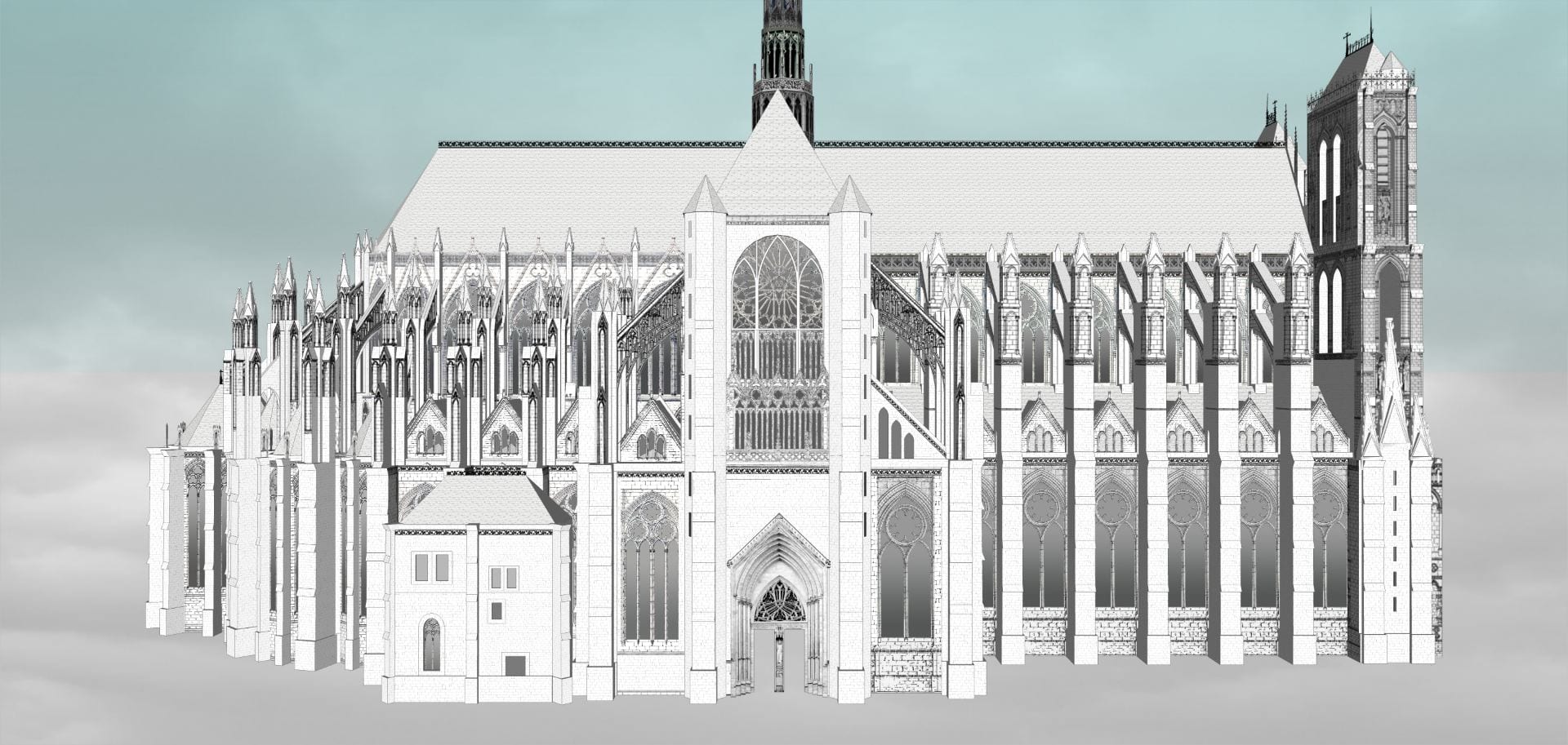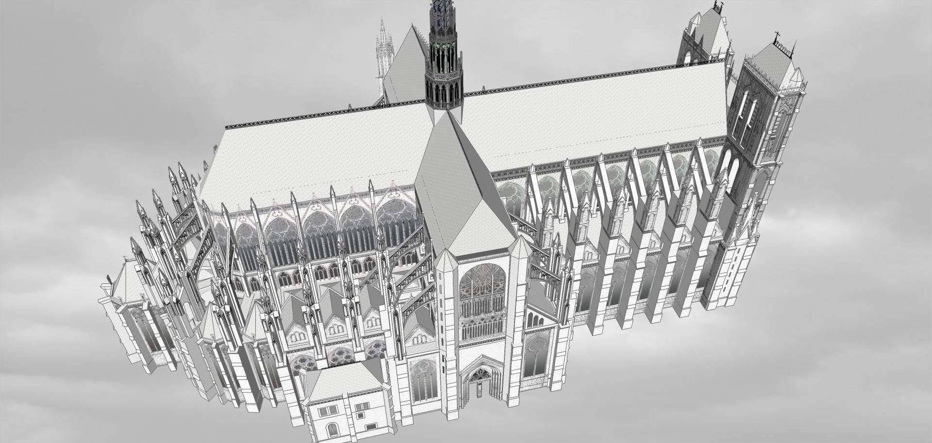 My objective is to digitize and re-imagine Amiens. To borrow a quote from Viollet-le-Duc, the legendary nineteenth-century preservationist-architect of Notre-Dame of Paris, my aim was “to restore the building to a state of completeness that may have never existed.” For instance, Amiens lost almost all of its original stained glass windows and large parts of its nave. My project responds by presenting the cathedral in an idealized light. Awkward walls, later additions, and anachronistic features can all be airbrushed away from my model, so as to reveal how the master masons originally envisioned their cathedral in the thirteenth century.