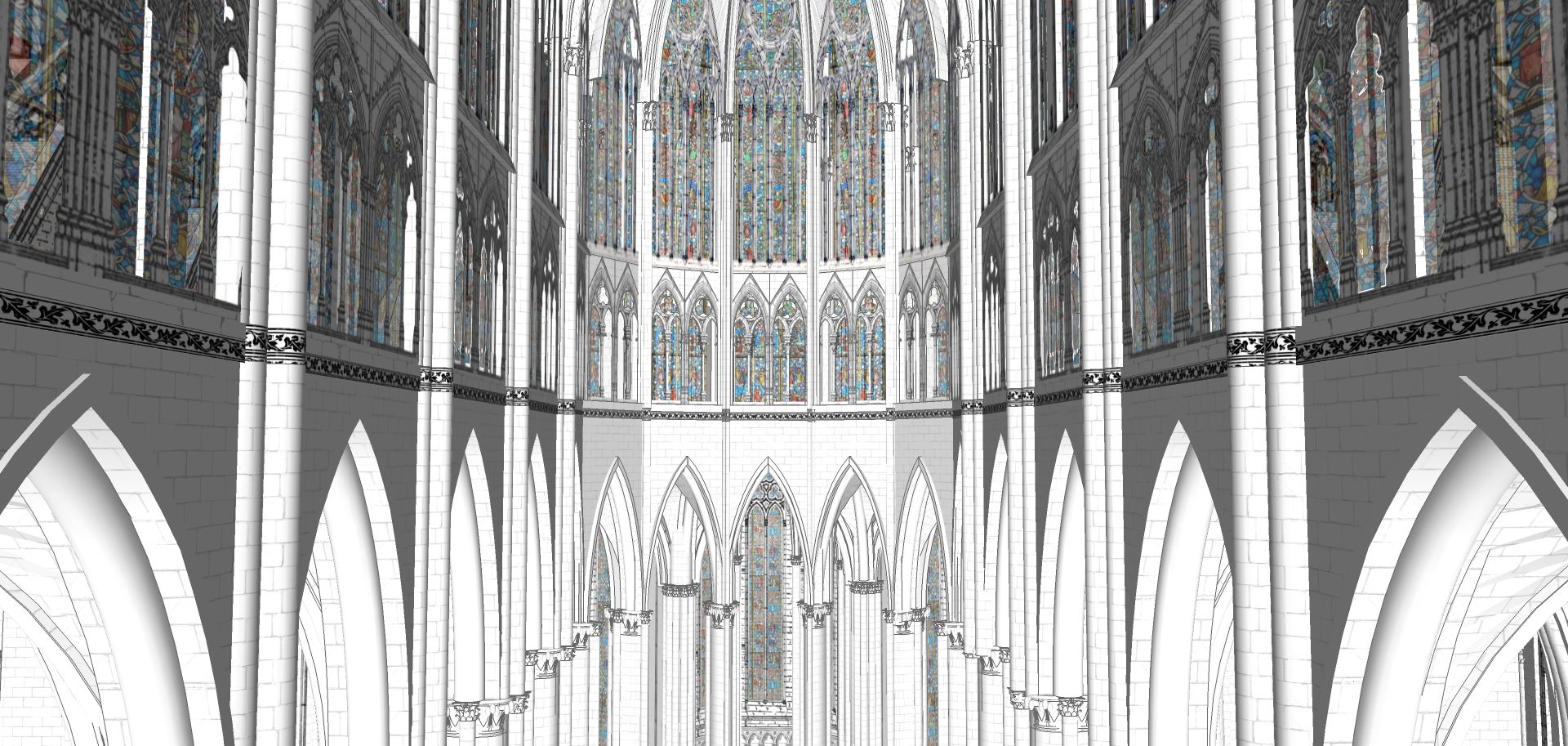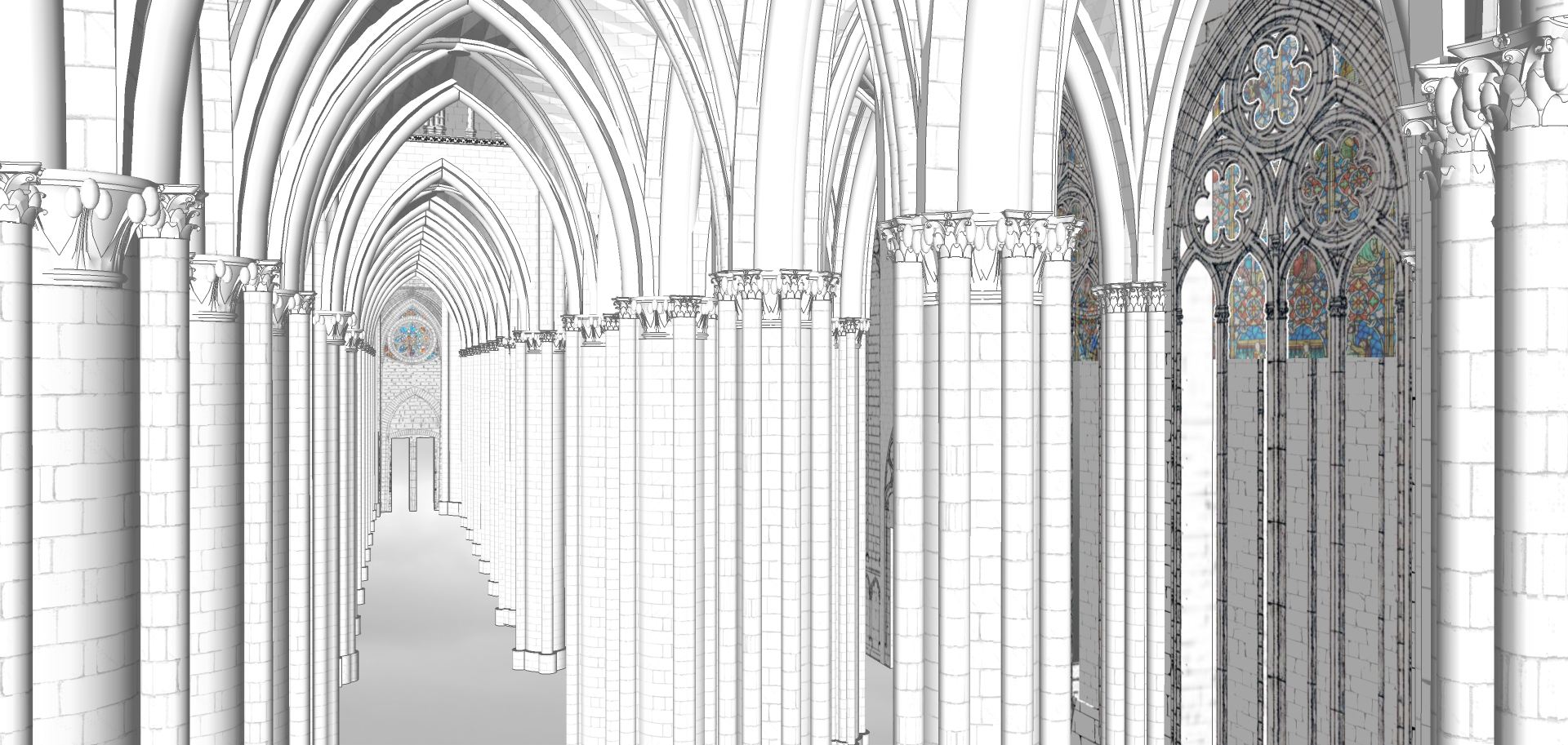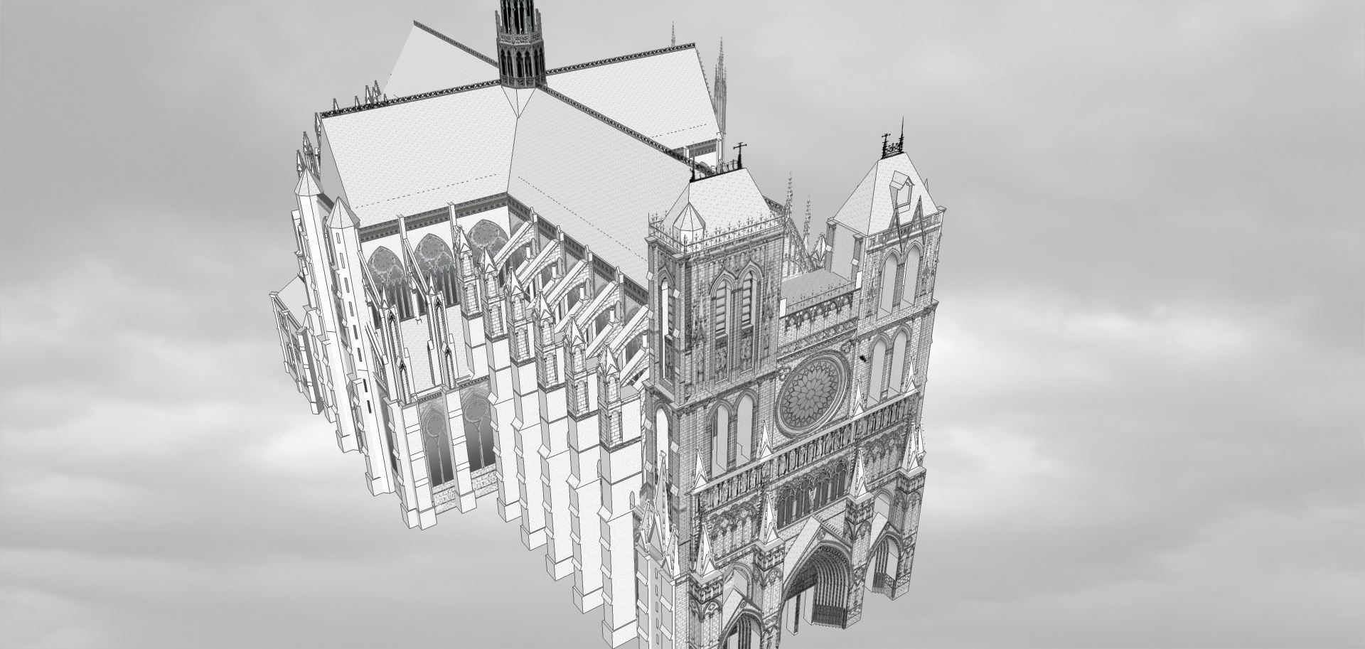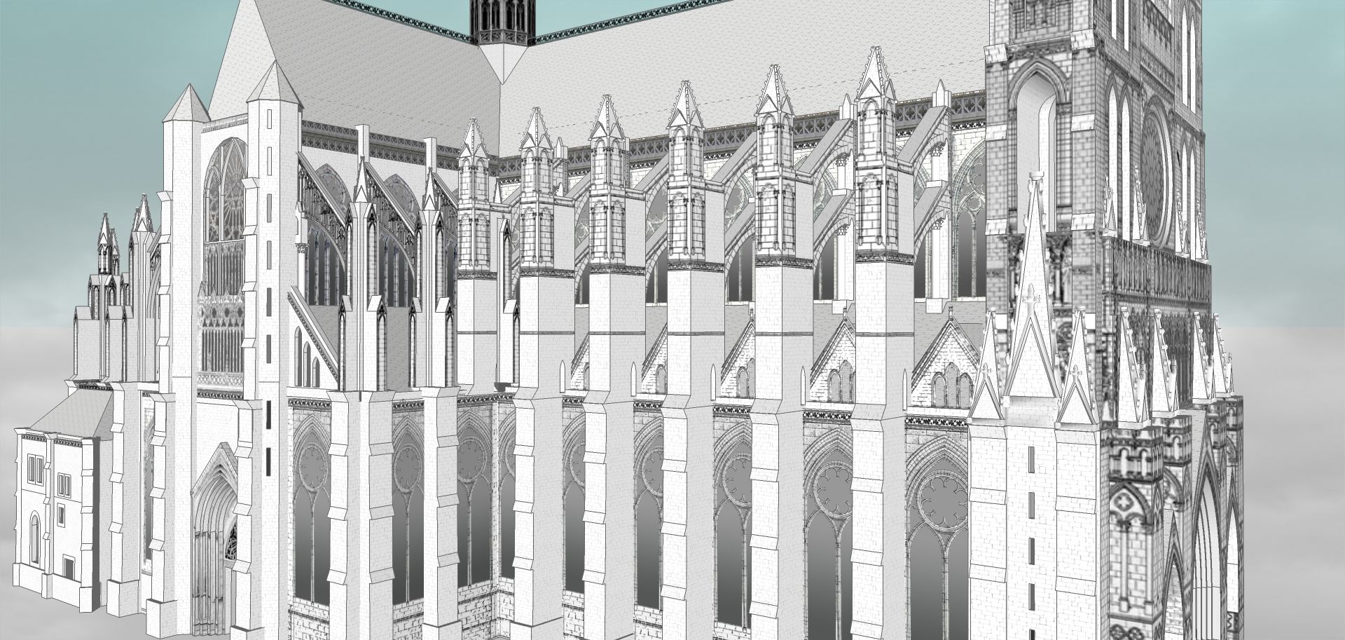 My objective is to digitize and re-imagine Amiens. To borrow a quote from Viollet-le-Duc, the legendary nineteenth-century preservationist-architect of Notre-Dame of Paris, my aim was “to restore the building to a state of completeness that may have never existed.” For instance, Amiens lost almost all of its original stained glass windows and large parts of its nave. My project responds by presenting the cathedral in an idealized light. Awkward walls, later additions, and anachronistic features can all be airbrushed away from my model, so as to reveal how the master masons originally envisioned their cathedral in the thirteenth century.