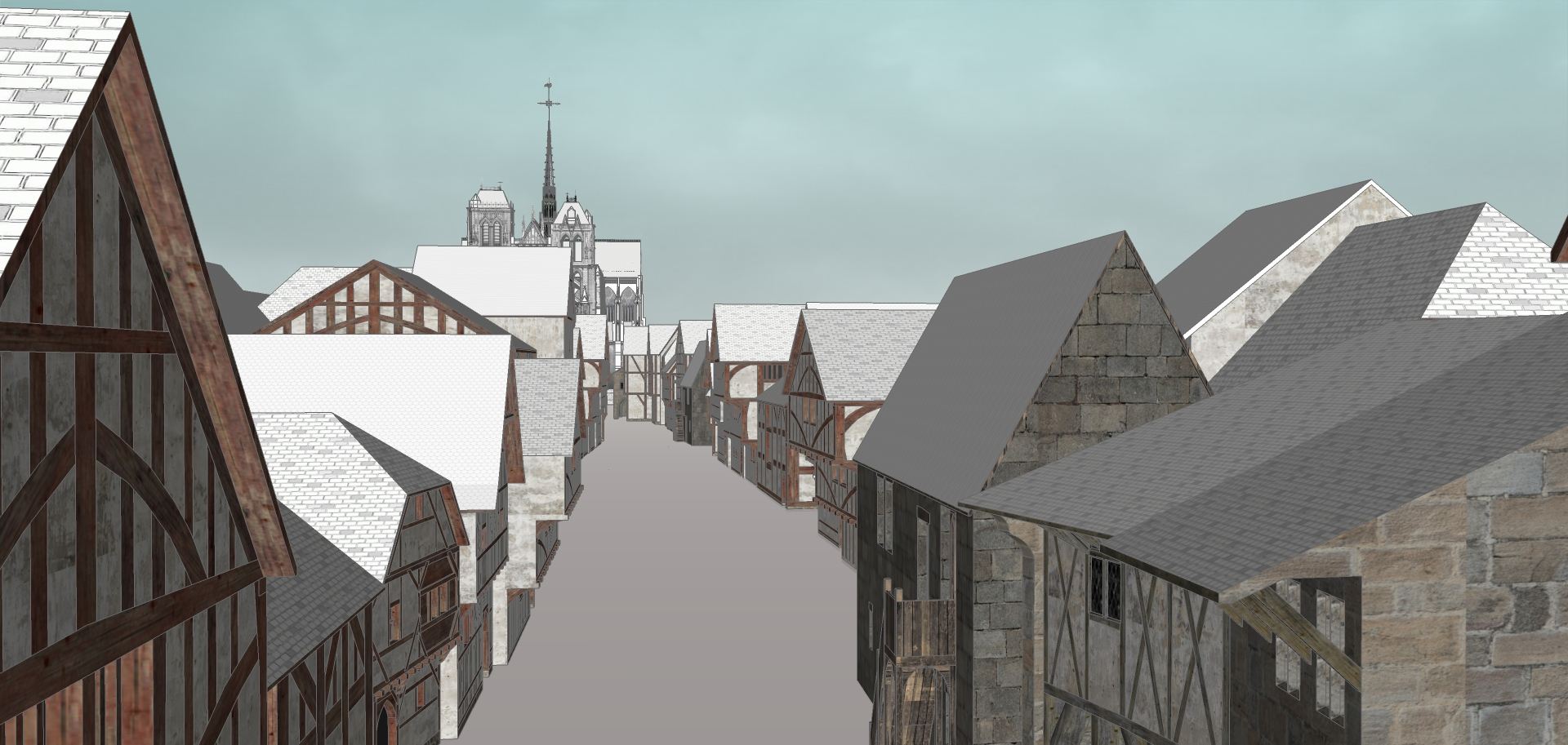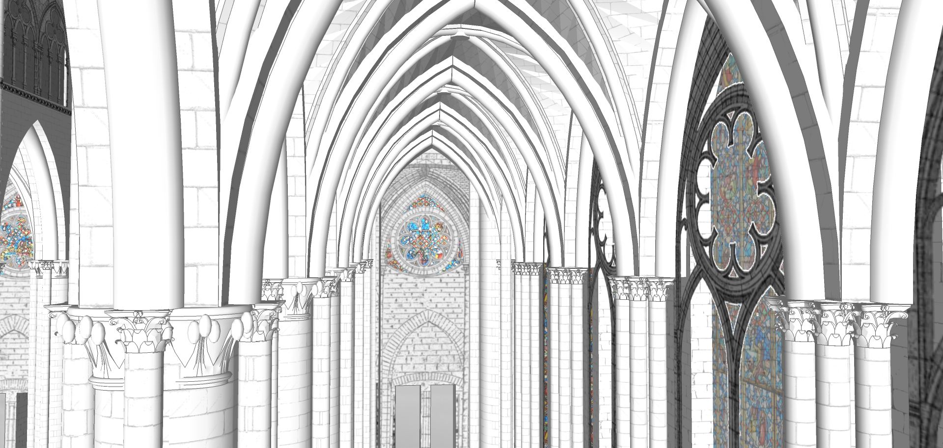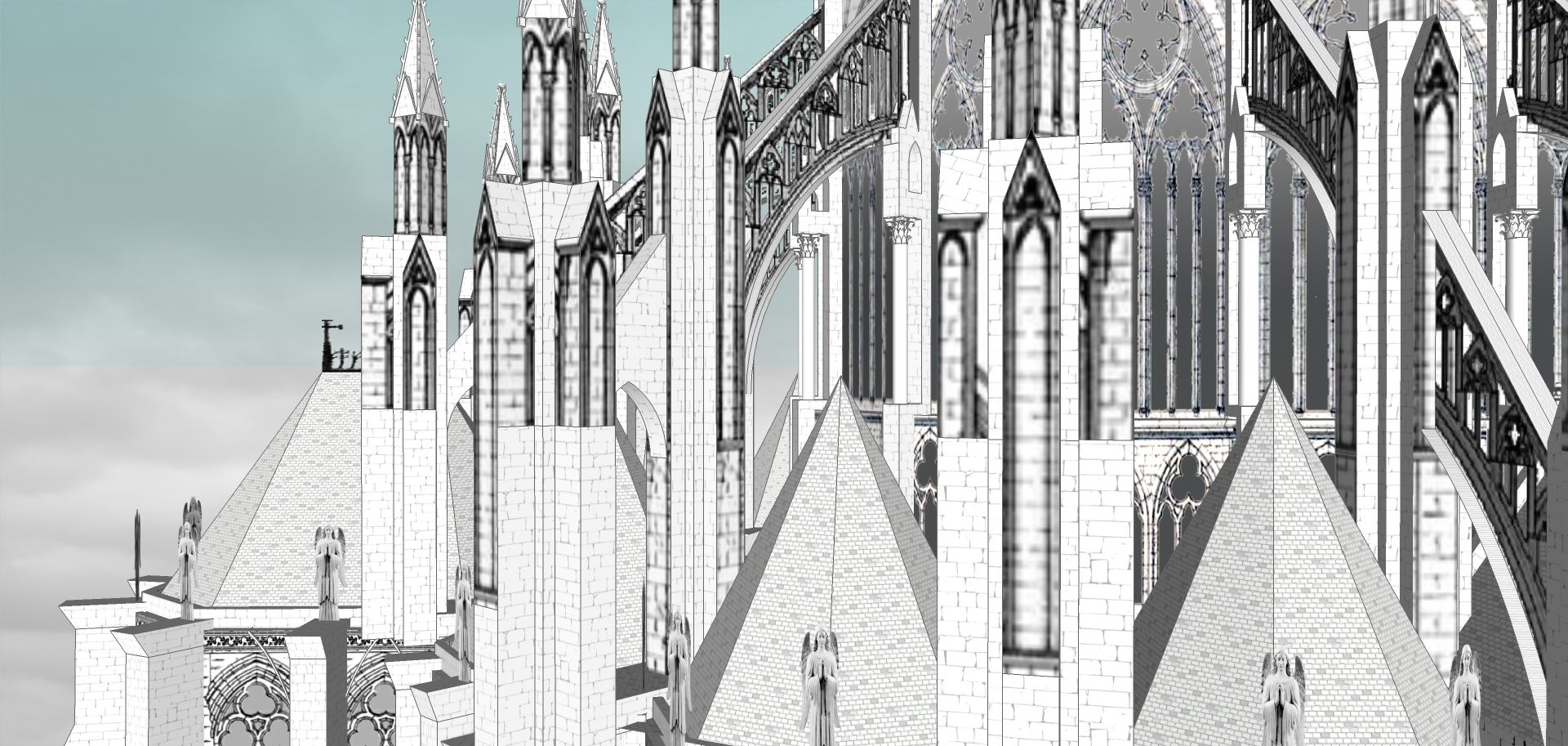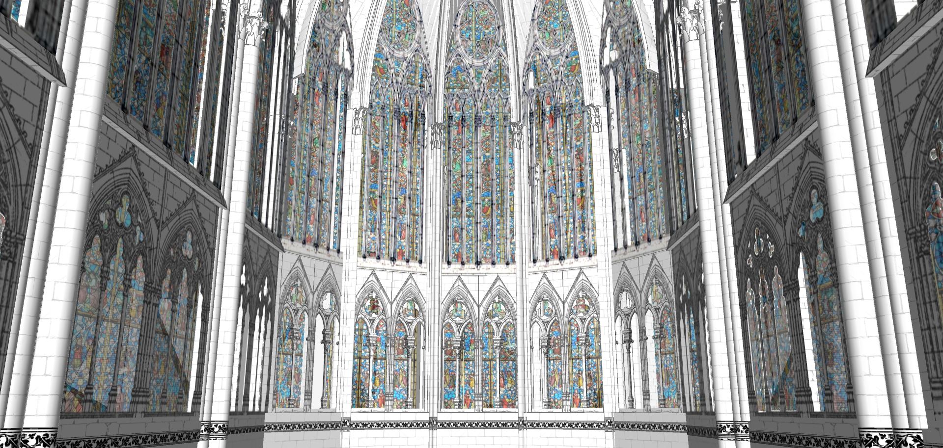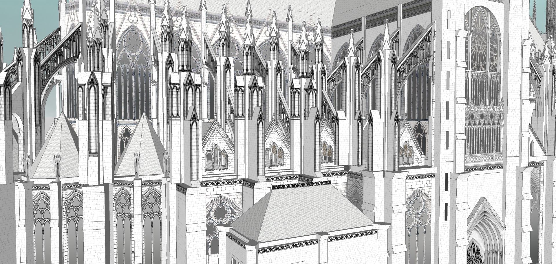 My objective is to digitize and re-imagine Amiens. To borrow a quote from Viollet-le-Duc, the legendary nineteenth-century preservationist-architect of Notre-Dame of Paris, my aim was “to restore the building to a state of completeness that may have never existed.” For instance, Amiens lost almost all of its original stained glass windows and large parts of its nave. My project responds by presenting the cathedral in an idealized light. Awkward walls, later additions, and anachronistic features can all be airbrushed away from my model, so as to reveal how the master masons originally envisioned their cathedral in the thirteenth century.