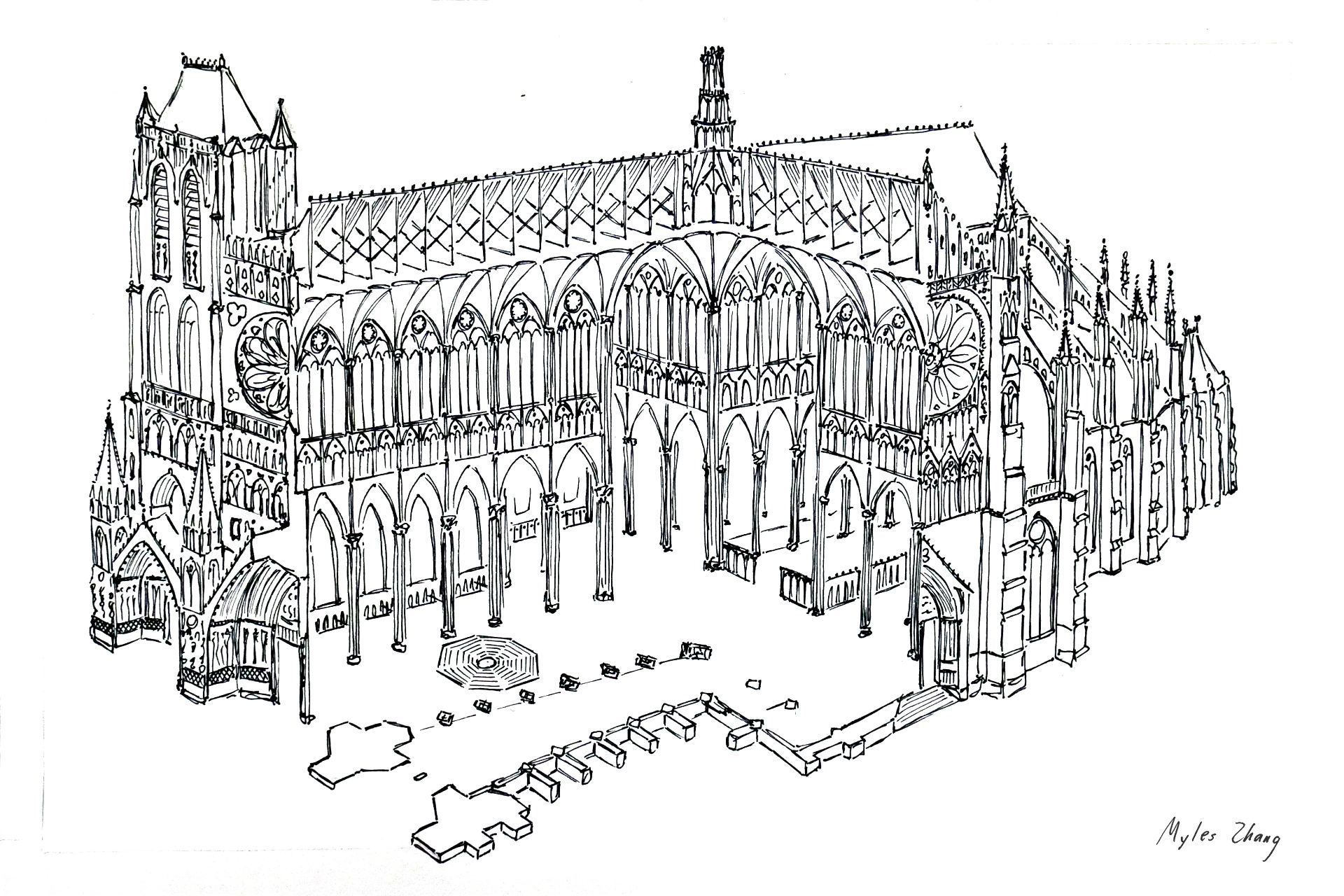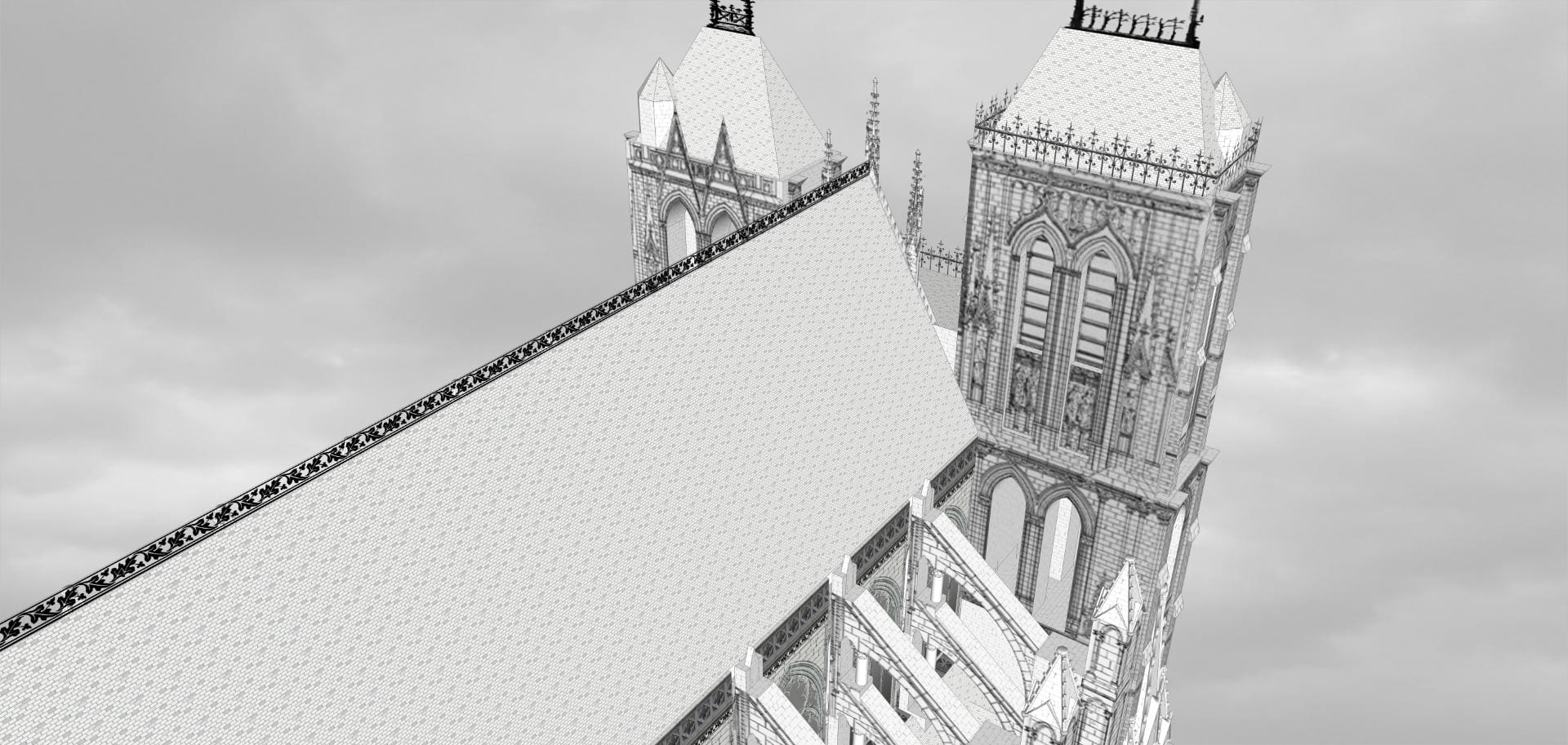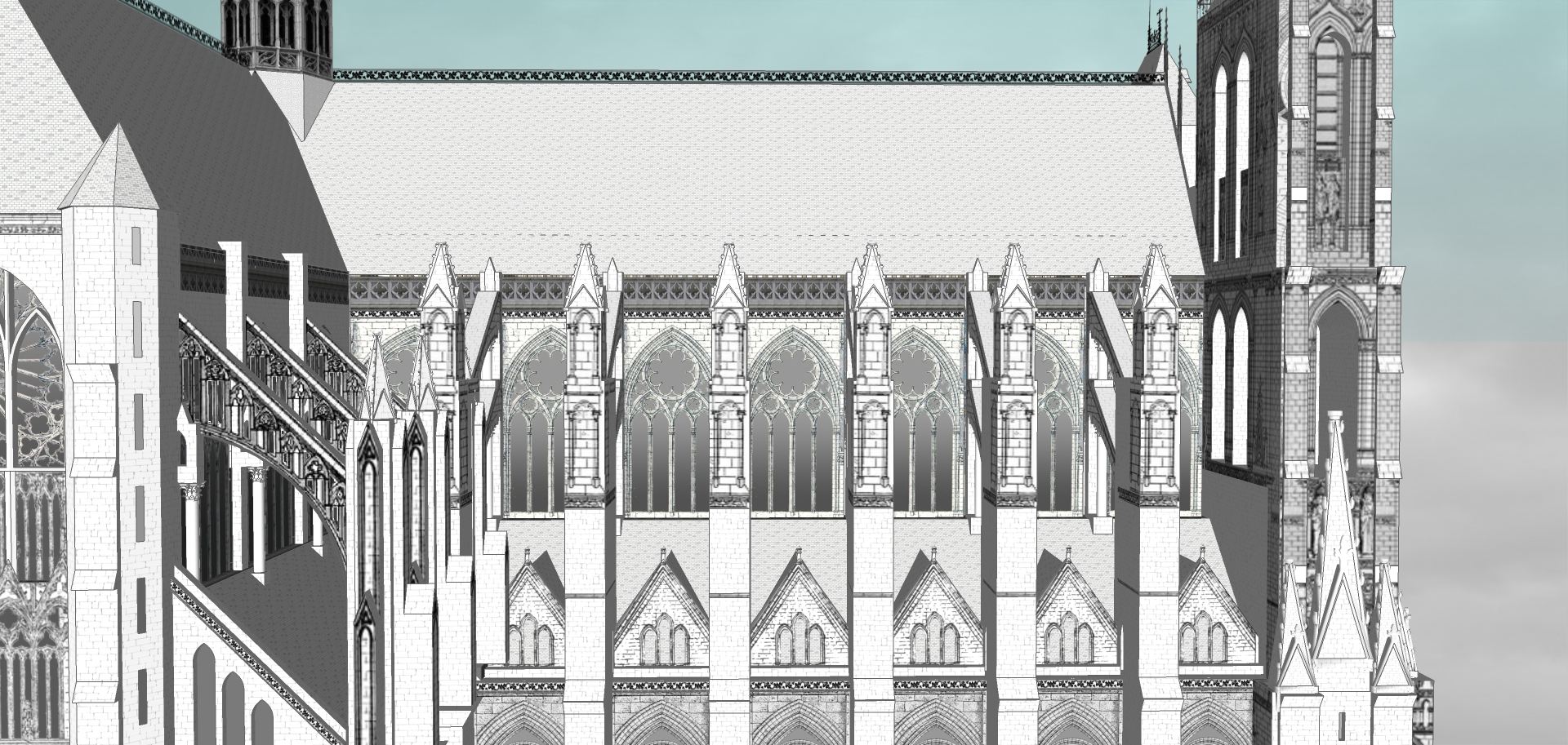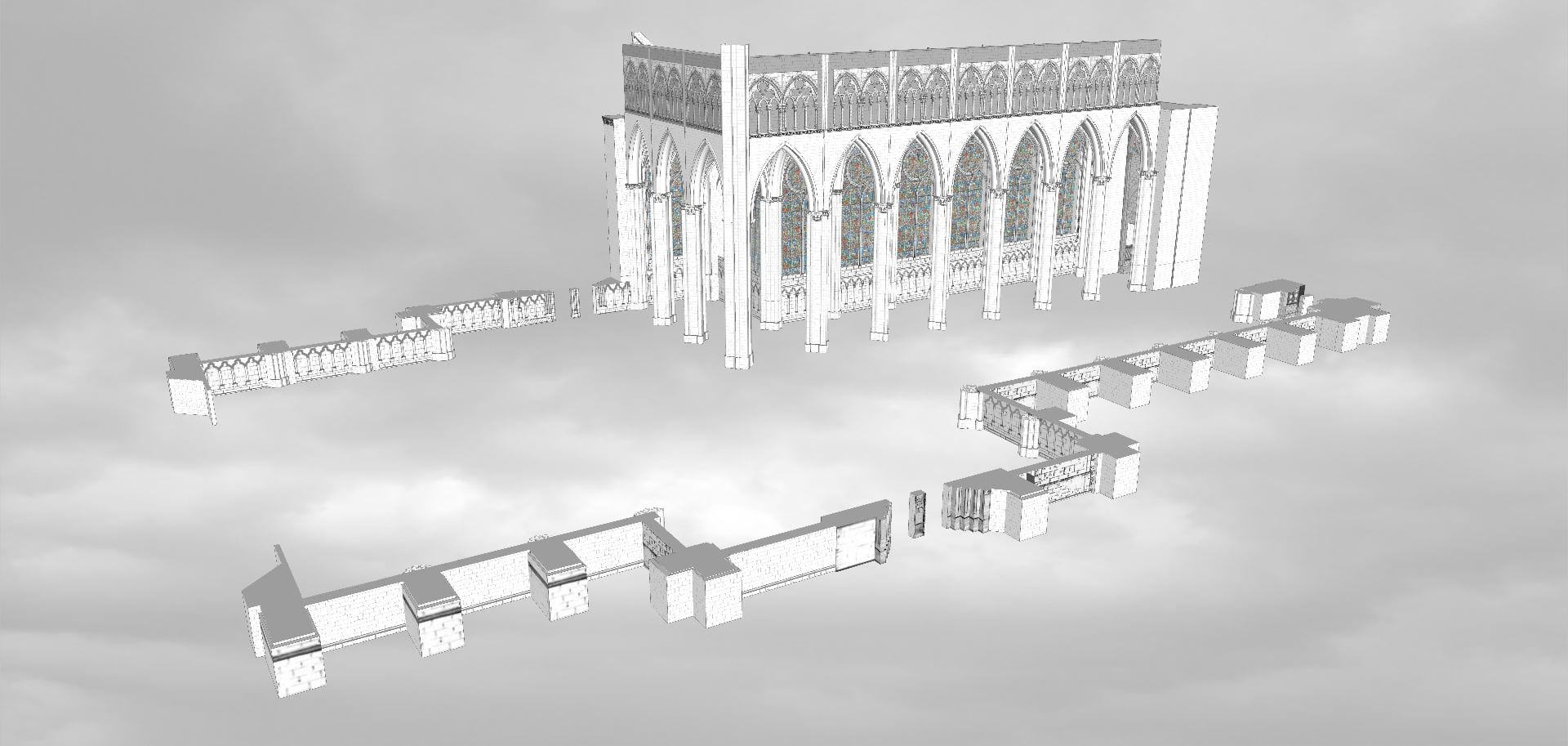 My objective is to digitize and re-imagine Amiens. To borrow a quote from Viollet-le-Duc, the legendary nineteenth-century preservationist-architect of Notre-Dame of Paris, my aim was “to restore the building to a state of completeness that may have never existed.” For instance, Amiens lost almost all of its original stained glass windows and large parts of its nave. My project responds by presenting the cathedral in an idealized light. Awkward walls, later additions, and anachronistic features can all be airbrushed away from my model, so as to reveal how the master masons originally envisioned their cathedral in the thirteenth century.