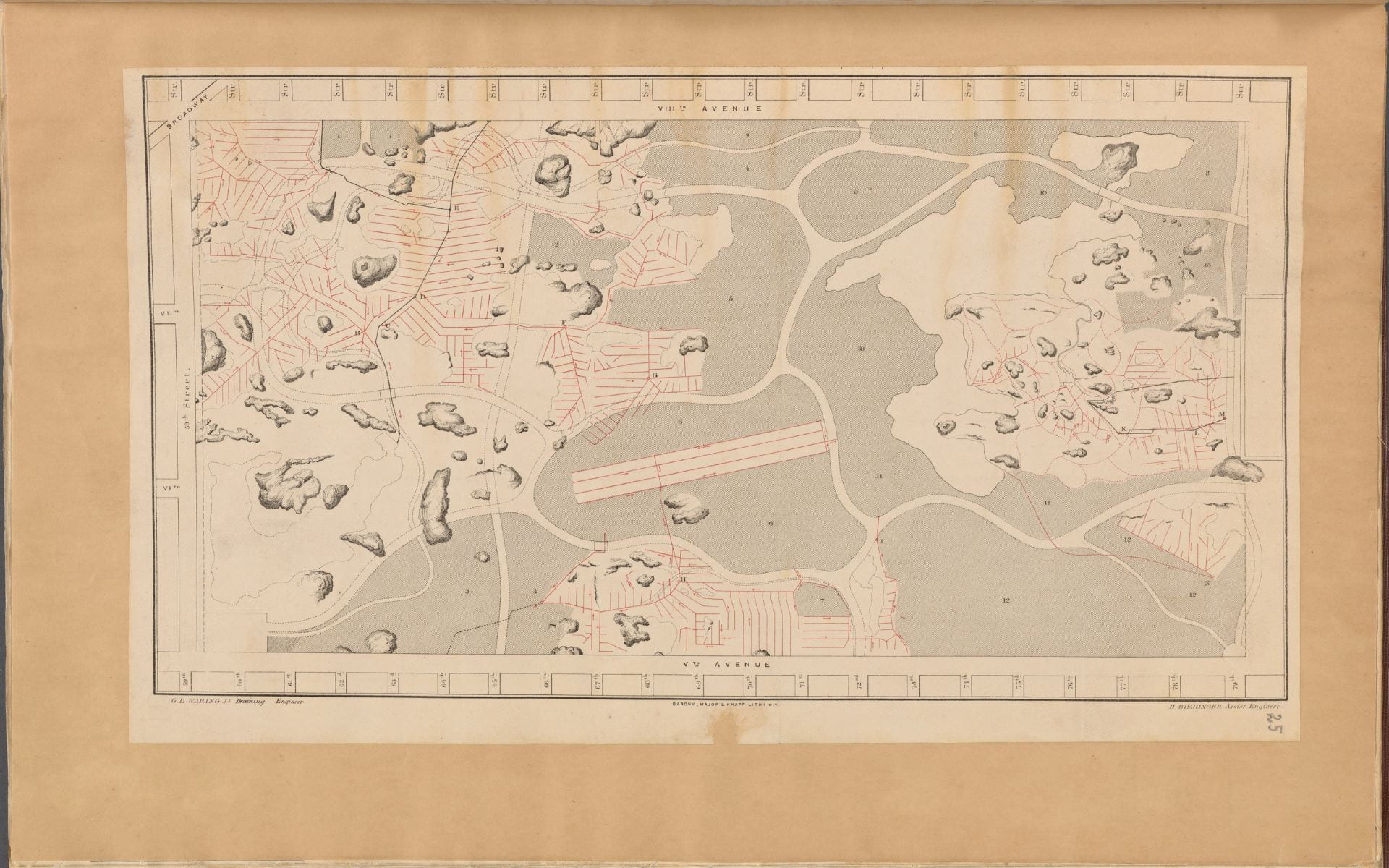 “Map of Drainage System on Lower Part of the Central Park as far as completed up to December 31st, 1858.”