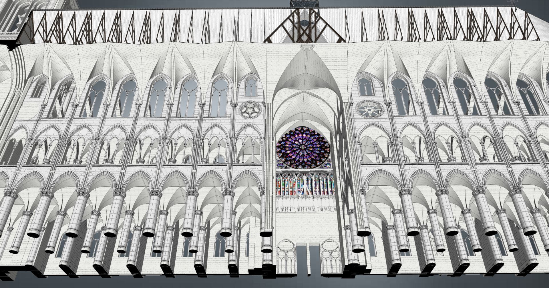 Notre-Dame Cross Section from West Facade with Virtual Reality Text