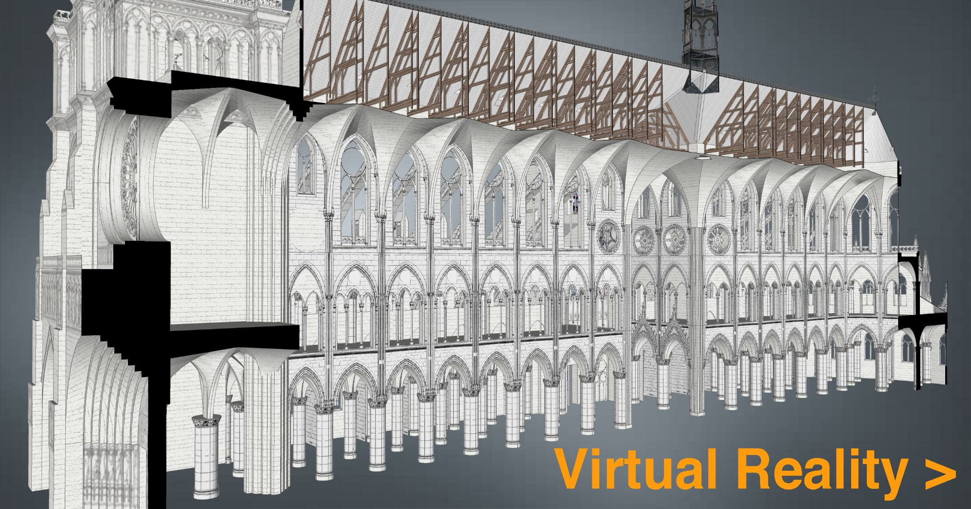 Notre-Dame Cross Section from West Facade with Virtual Reality Text