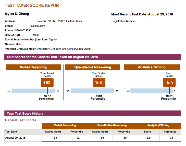 – GRE scores